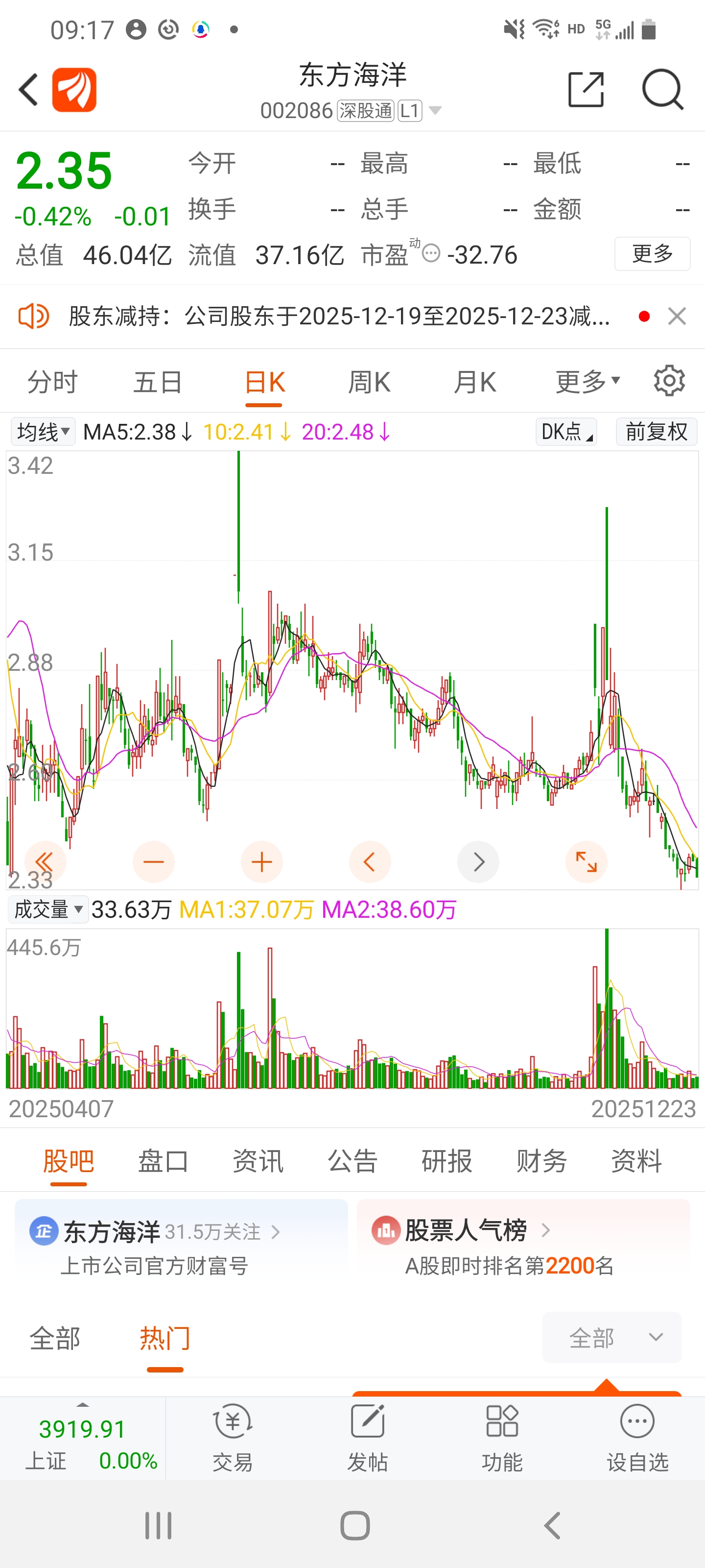 $东方海洋(SZ002086)$ 这两根“墓碑线”太典型了