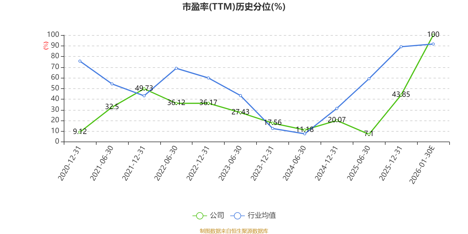 以本次披露业绩预告均值计算,公司近年市盈率(TTM)图如下所示: