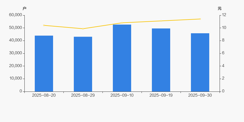 2025年8月20日至今,公司股东户数有所增长,区间涨幅为4.21%。2025年8月20日至2025年9月30日区间股价上涨9.60%。
