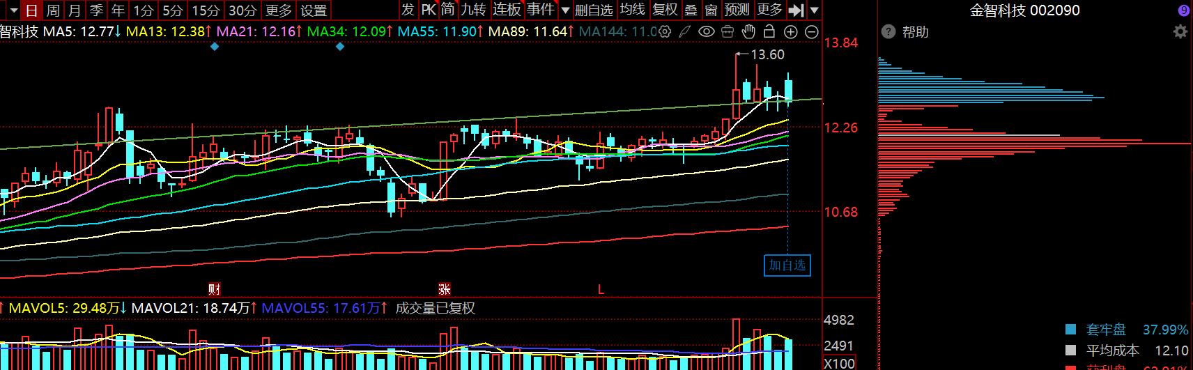 集合竞价挂的买单12.93成交了,加了一点仓位