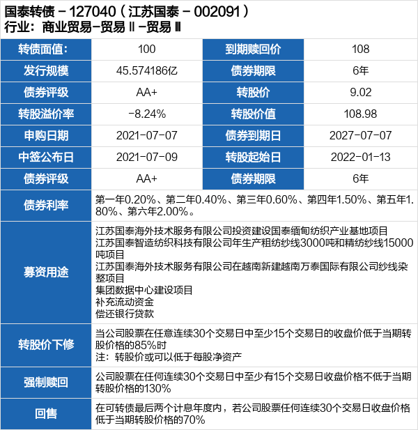 国泰转债申购提示(7-7)