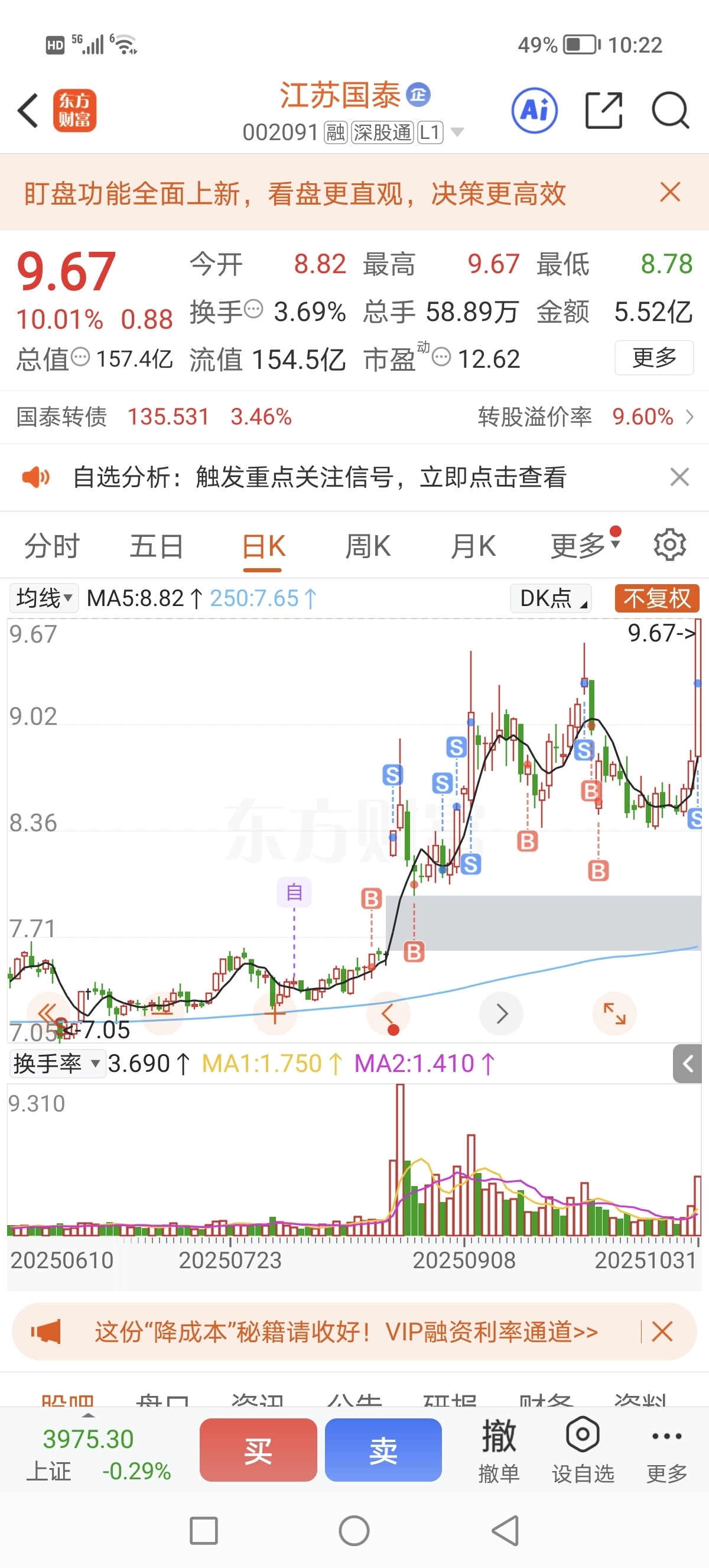 $江苏国泰(SZ002091)$ 这是我的买卖点,你们可以观摩一下,希望能帮到一些有缘人,懂得低买高卖到底是啥,炒股不应该追高的,做中长线看起来需要耐心,实际上如果加上做T,一样能够大赚。