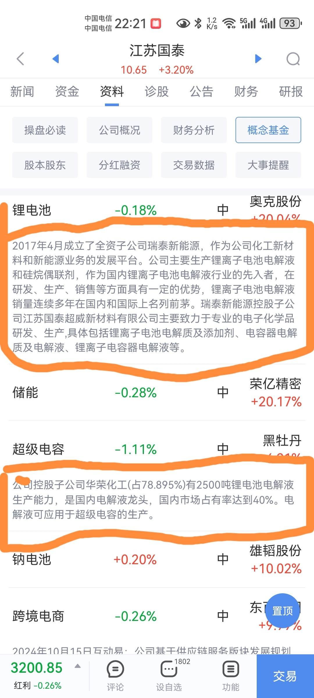 请各位看官认真阅读一下江苏国泰的业务概念,不要只认为公司是从事外贸的企业,公司的业务是外贸和化工新材料双轨发展的综合企业。当前炒得火热的电解液价格回升,无疑会给公司带来丰厚的收益!