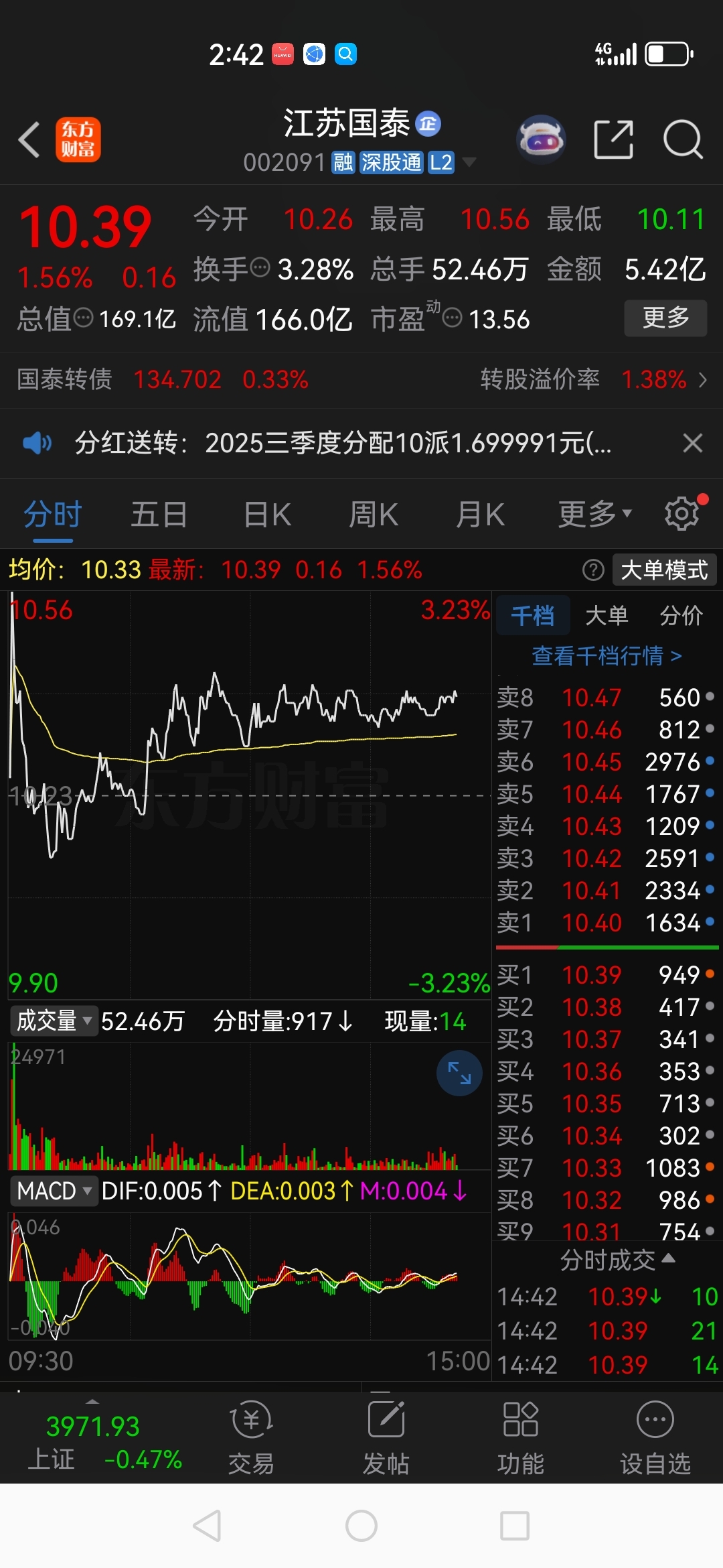 今天涨1角6,晚上分红加税1角6,明天低开2角5,再买回来,分红一概如此
