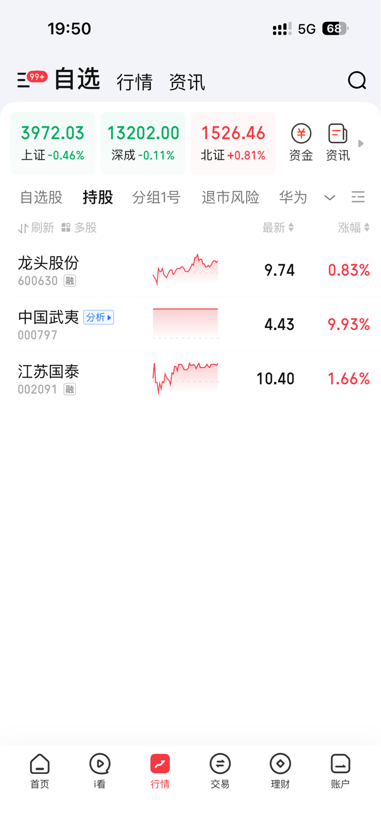 武夷和国泰没有操作;午盘重新进了“龙头”,感觉还是蛮有支撑的