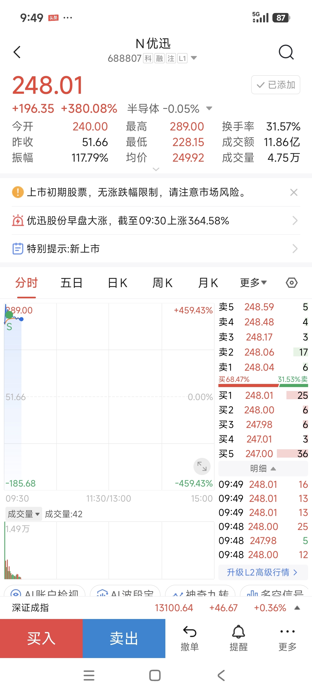 $江苏国泰(SZ002091)$ 心态放好,这波调整眼看利润回吐很是难受,但越跌股息率越高。各方资金都盯着买死鱼呢!今天新股优迅芯片上市,十万到手,正好补补皮裤,看着摩尔中签眼红开了科创板,没想到一周就中了一签!