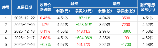 江苏国泰:融资净偿还87.11万元,融资余额4.51亿元(12-22)