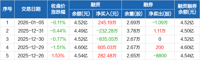江苏国泰:融资净买入245.19万元,融资余额4.52亿元(01-05)