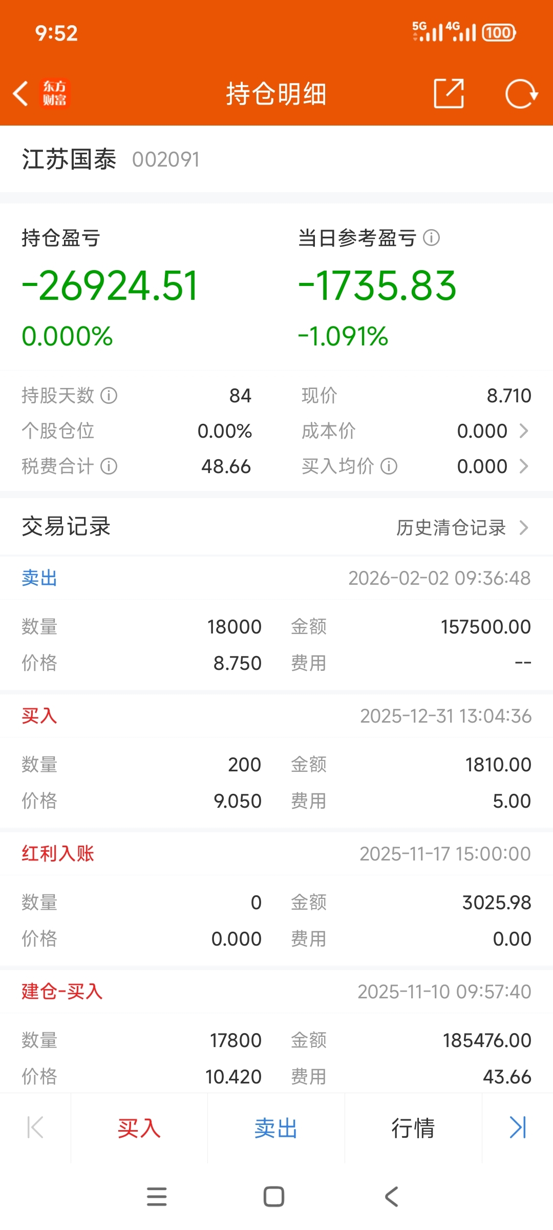 $江苏国泰(SZ002091)$ 走了,拜拜,认亏了