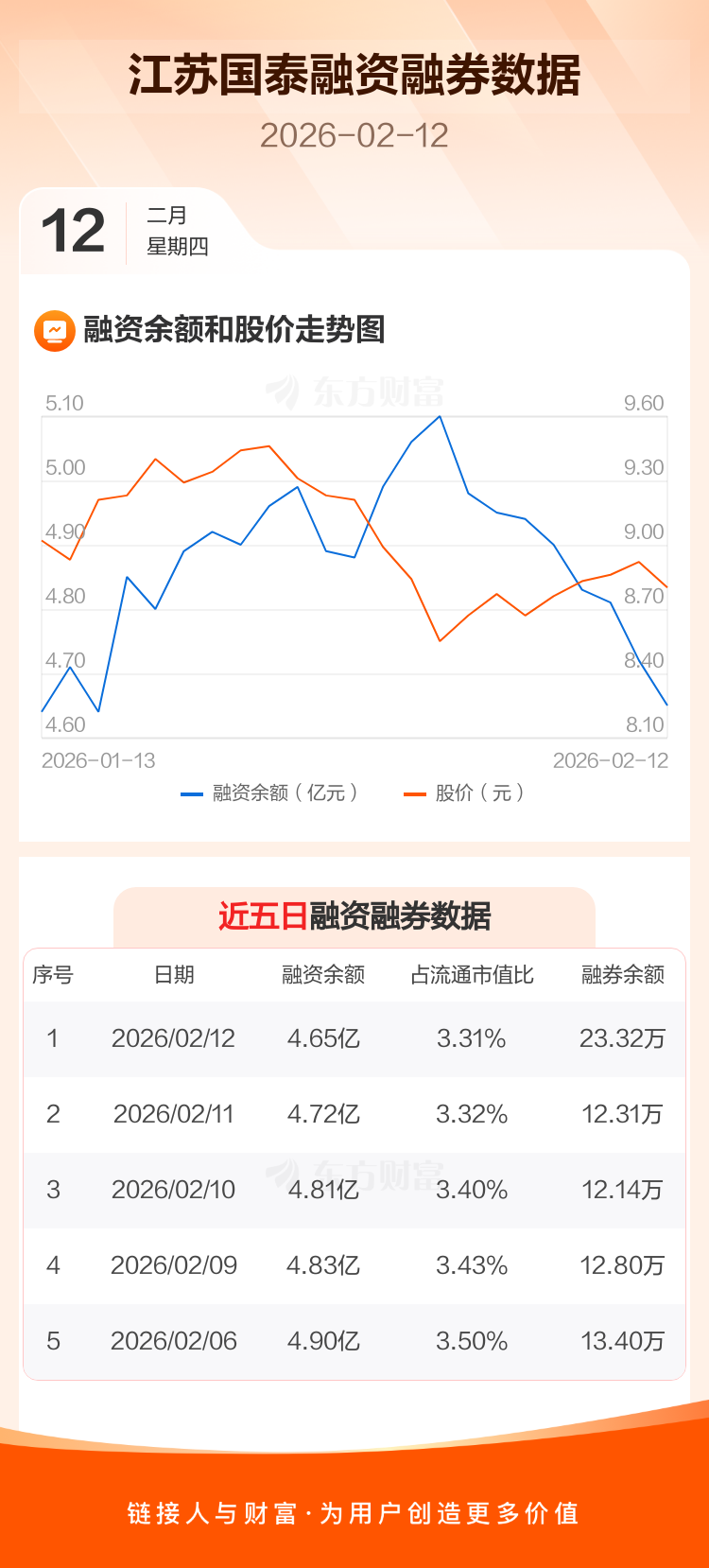 交易所最新数据显示,江苏国泰于2026年2月12日获融资买入1305.57万元,融资偿还2037.17万元,当日融资净偿还731.6万元。目前,该股融资余额4.65亿,占流通市值比例为3.31%。