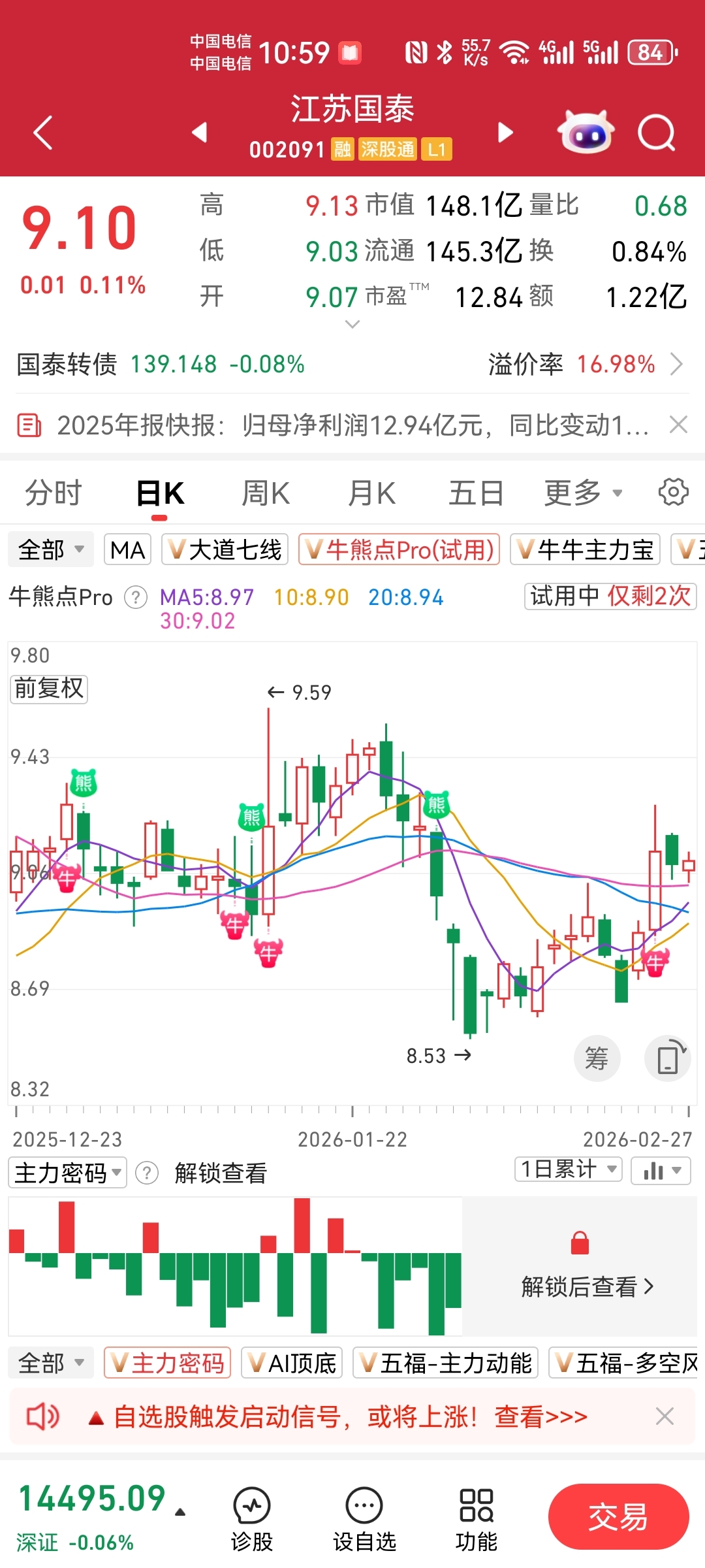 3.江苏国泰年报业绩已公布,3月~4月将是炒作低估值高分红破净绩优股的最佳时机,逢低介入静待佳音!