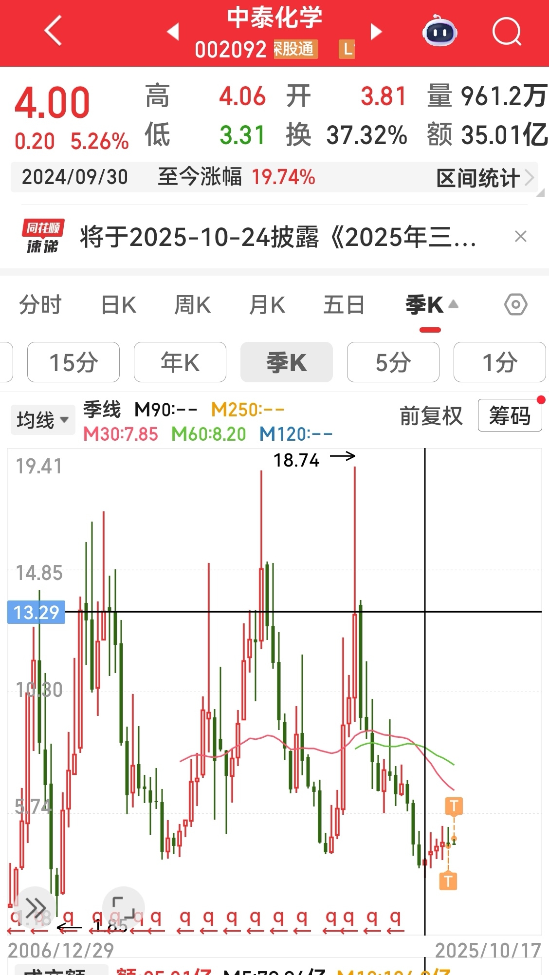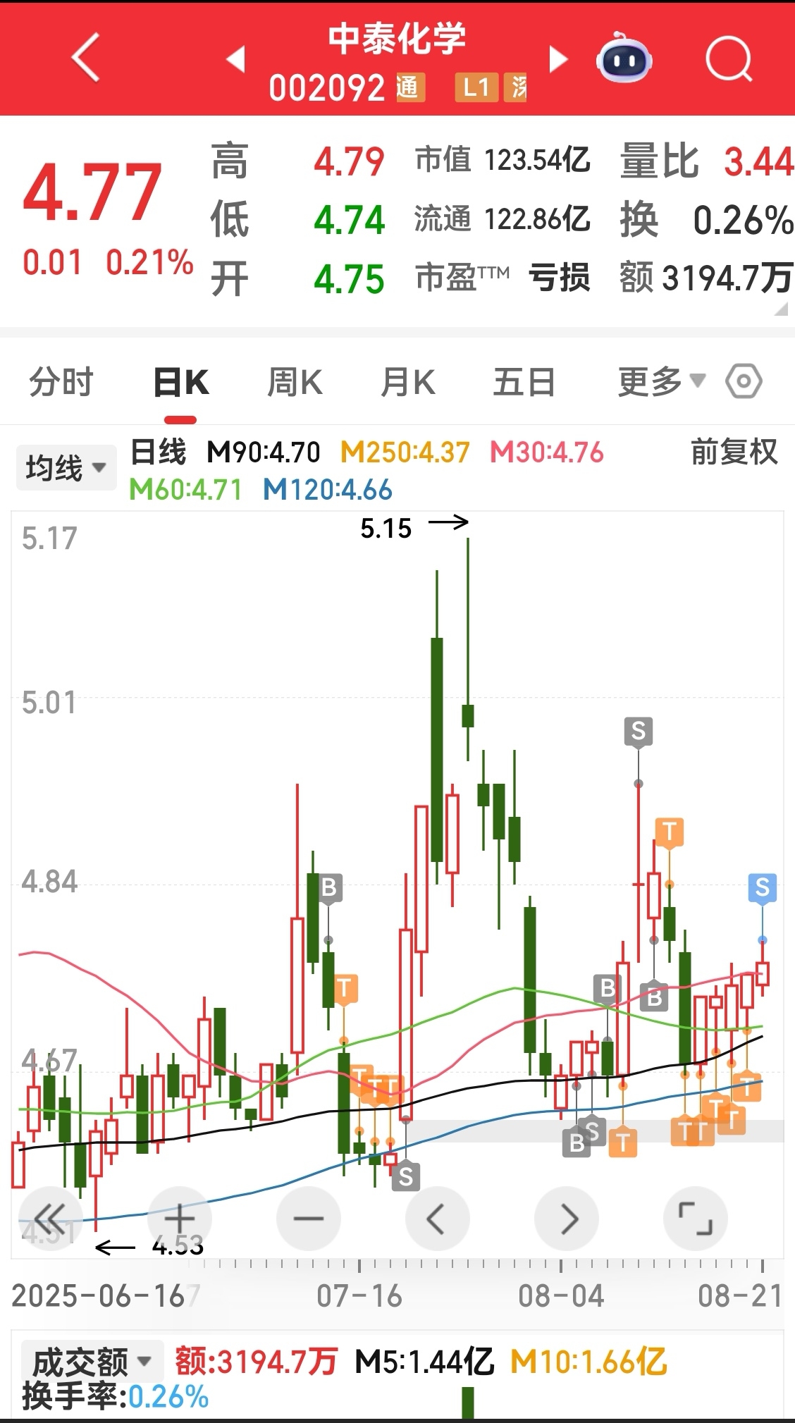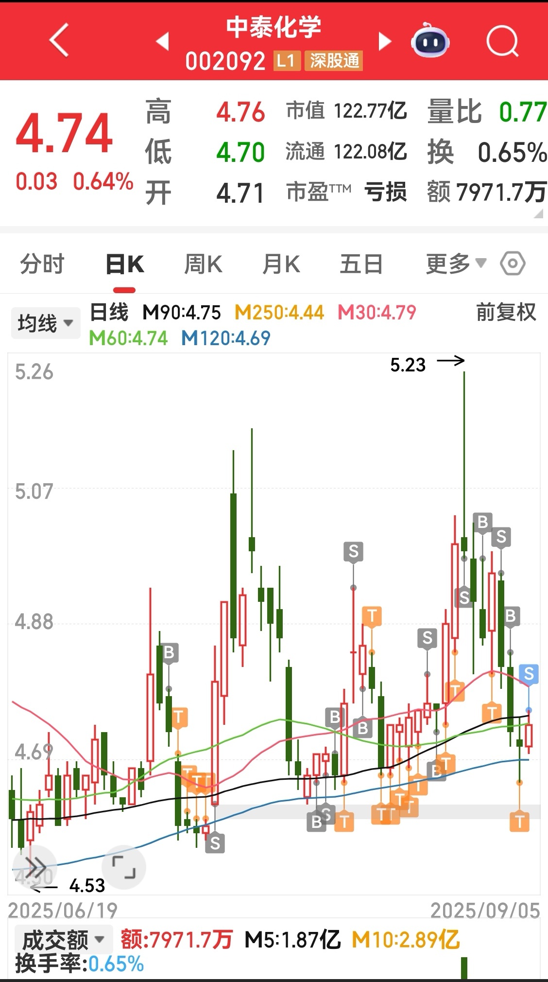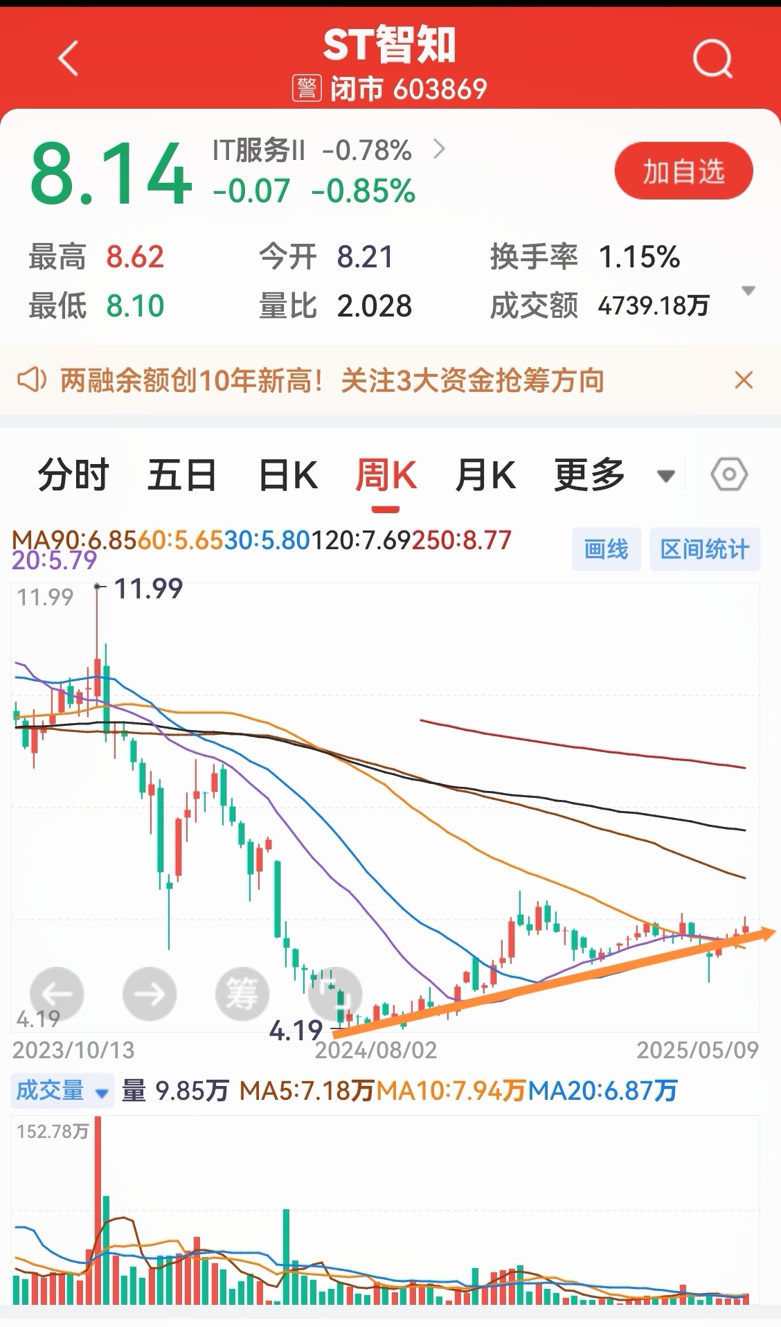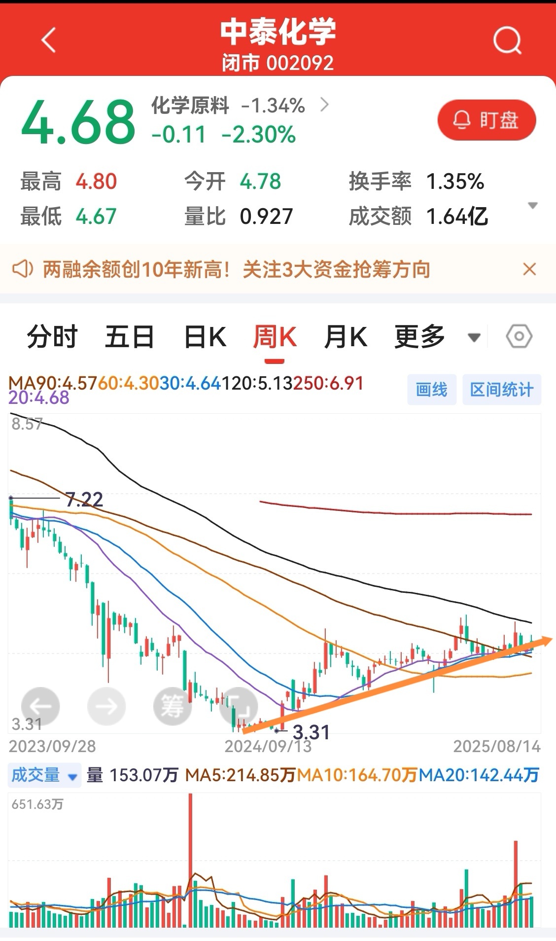 中泰化学,从周K线形态看与之前的ST百灵,ST智知的走势相似。控制好仓位,适量建仓