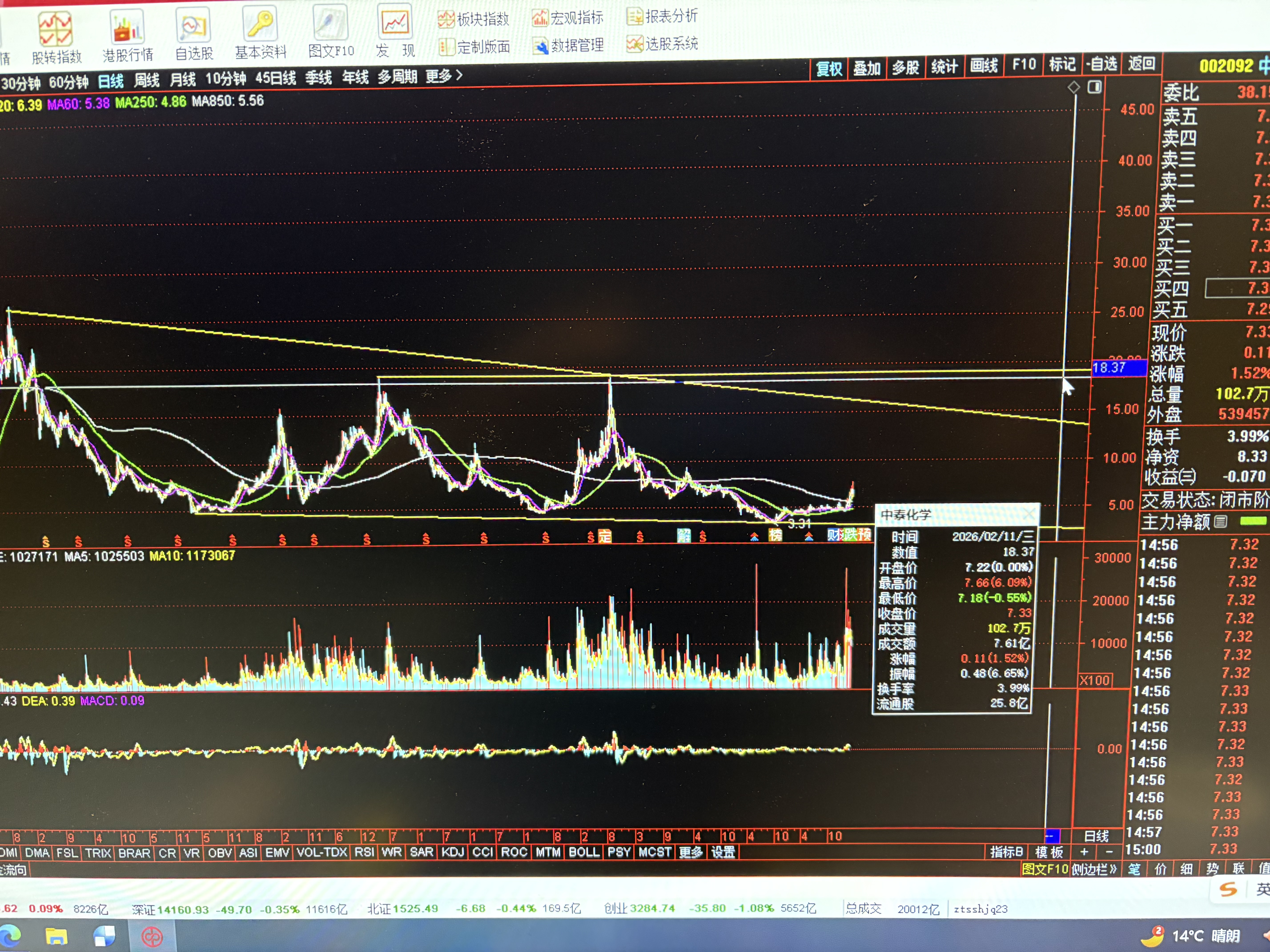股票我不懂,PVC我懂,PVC从21年到现在跌了五年,从一万二跌倒四千多,加上终端房地产不好,本来是过剩的。但收到消息这鬼货太耗电耗能,估计国家会进行产能压缩,回到吨利润一千到一千五。中泰如果300万吨产量,未来正常后会有30亿利润,每股收益会达到一元左右。按中泰图形,未来高点在15到18之间.