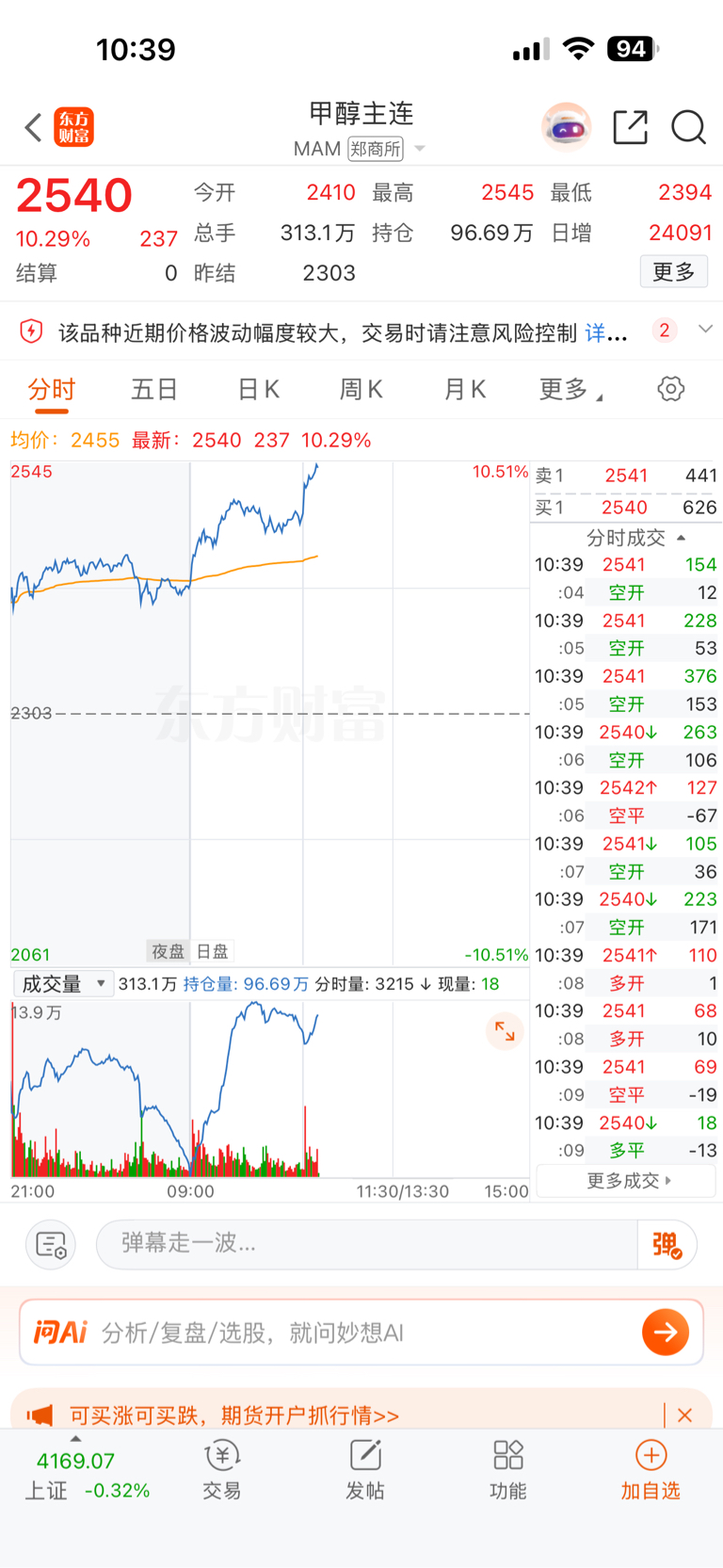 $中泰化学(SZ002092)$ 甲醇期货涨了十个多点,请问中泰不是有年产百万吨的甲醇生产吗?庄的格局这吗?但凡沾一点边甲醇概念都涨疯了,这么好的利好就这?