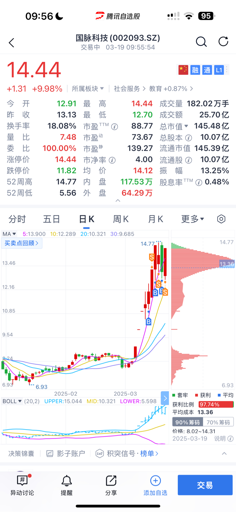 国脉科技涨停卖了这票前几天一直来回买,昨天尾盘13.9买的