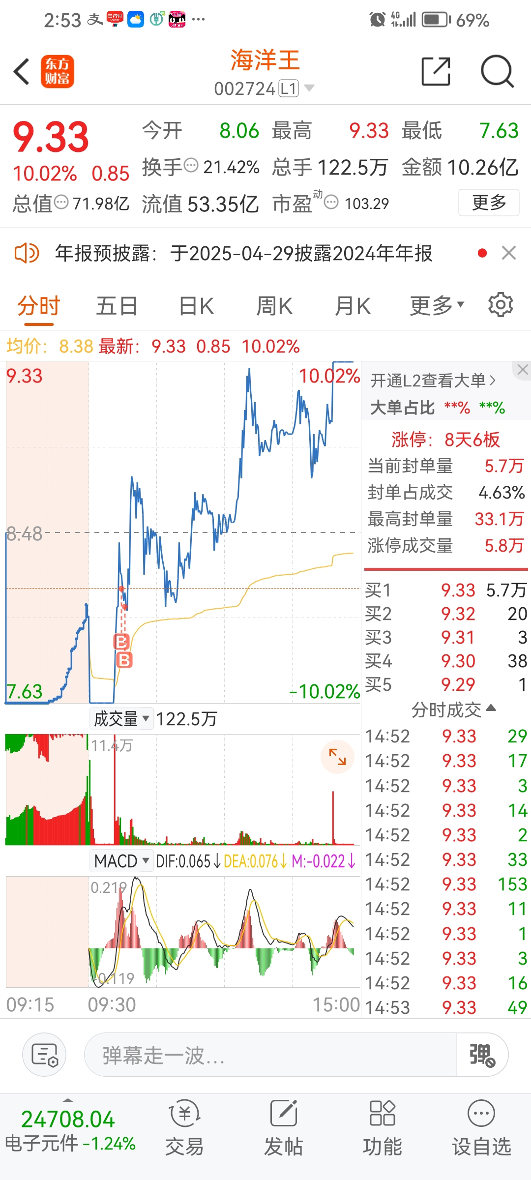 $国脉科技(SZ002093)$ 不信邪!国脉反包成功后遭遇反手杀,未能及时止盈出局,无奈今天割肉离场,转战海洋王,又做反包成功,斩获近14个点。热烈祝贺王者归来。