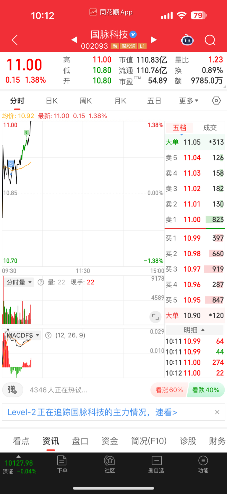 $国脉科技(SZ002093)$ 故意卖了1000股,主力就开始拉,下回不涨就卖一点。