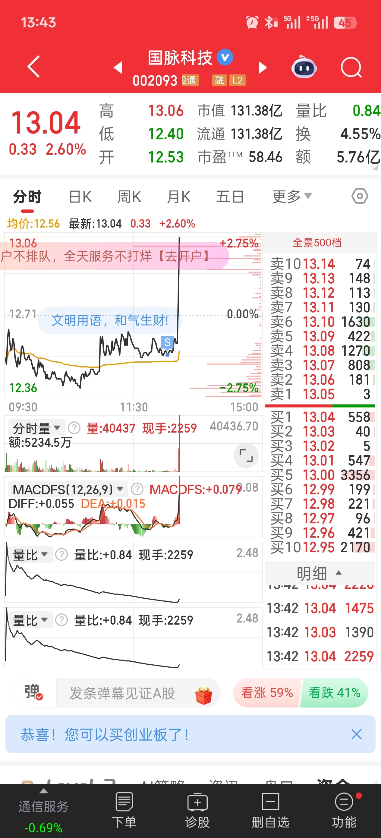 $国脉科技(SZ002093)$ 就缺了60手吗?