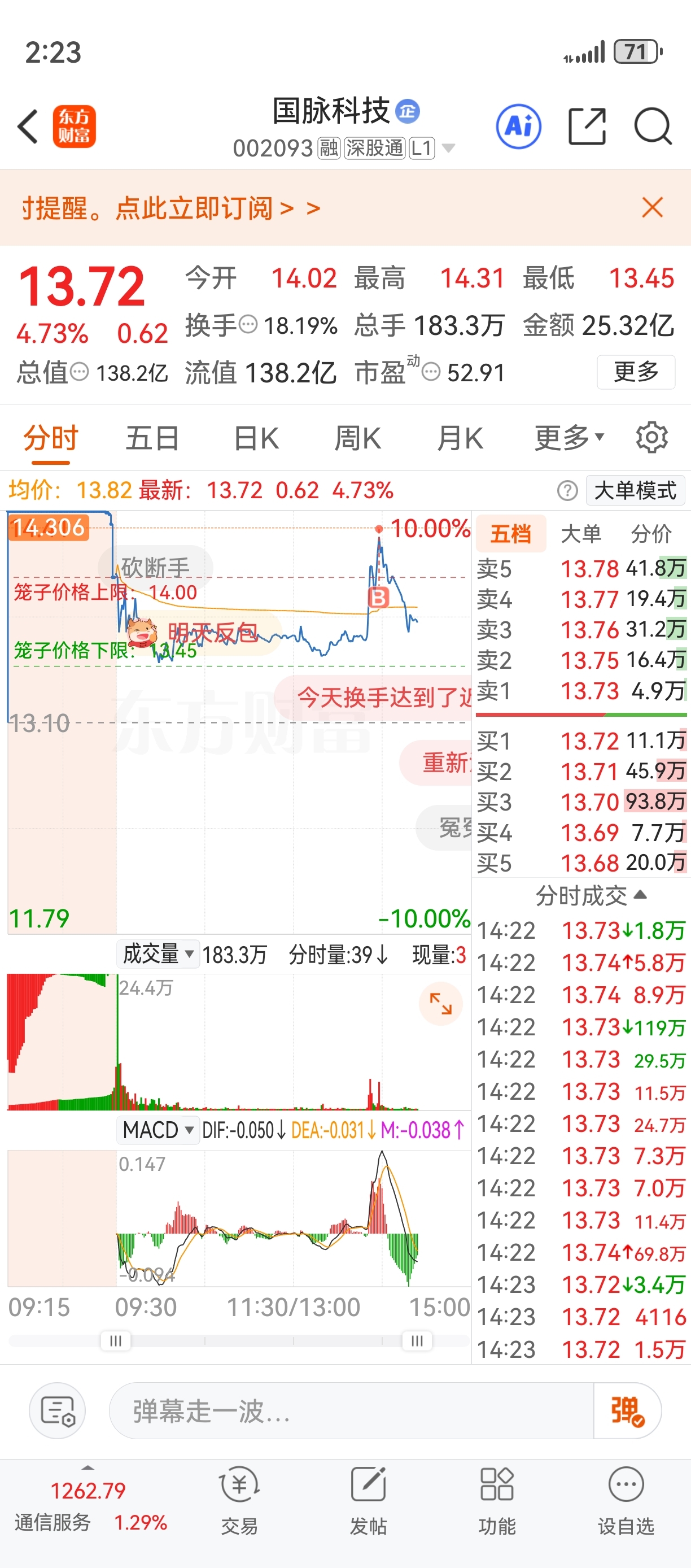 $国脉科技(SZ002093)$ 虽然只有一成仓,就想问一下还有谁能做到这么精准接盘
