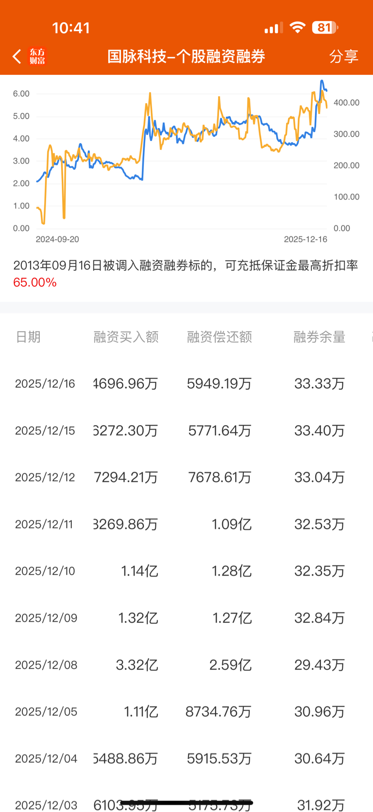 12.8是融资买入最多的一天,这一天人家已经融资买股票下跌了,跌到现在应该赚得盆