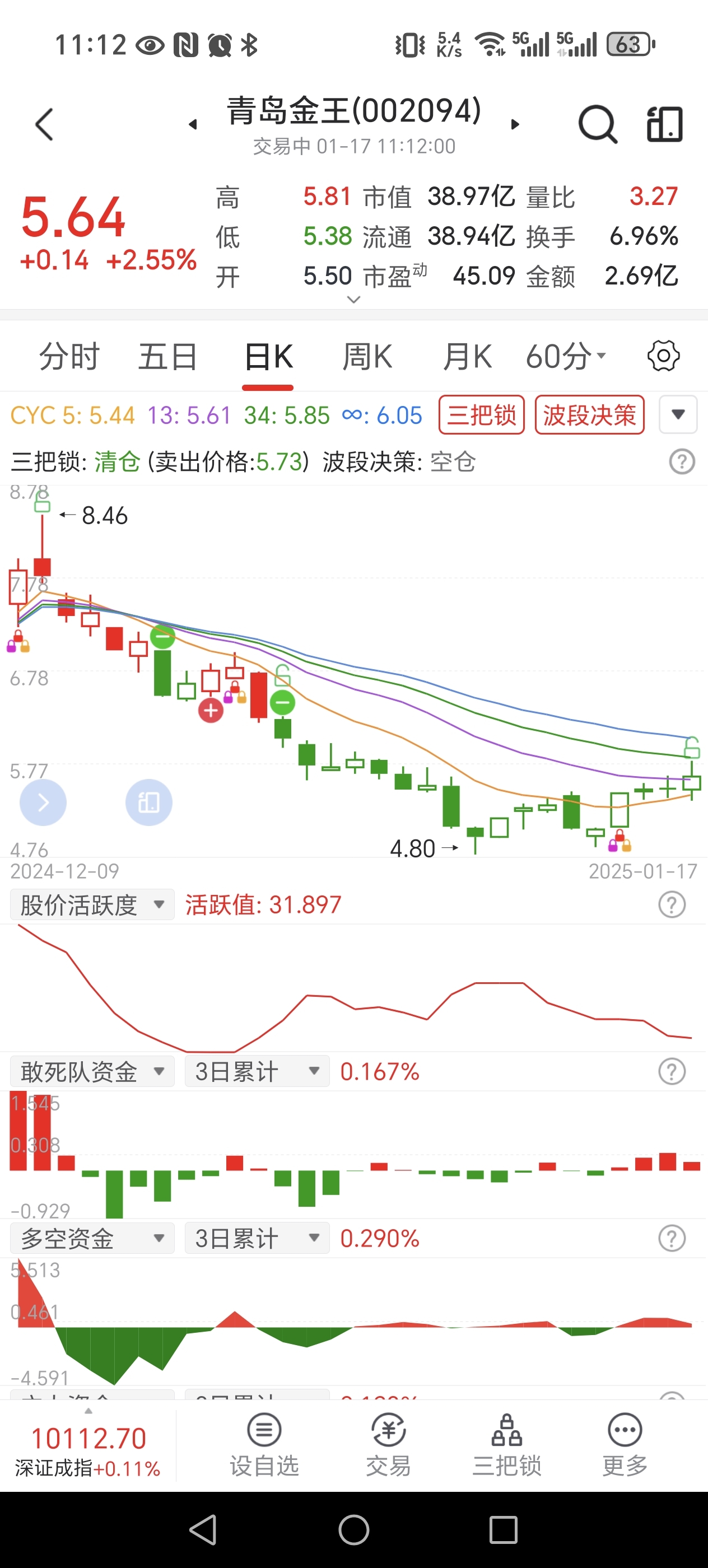 $青岛金王(SZ002094)$ 指南针说清仓,东方财富说今天最高点在5.77。