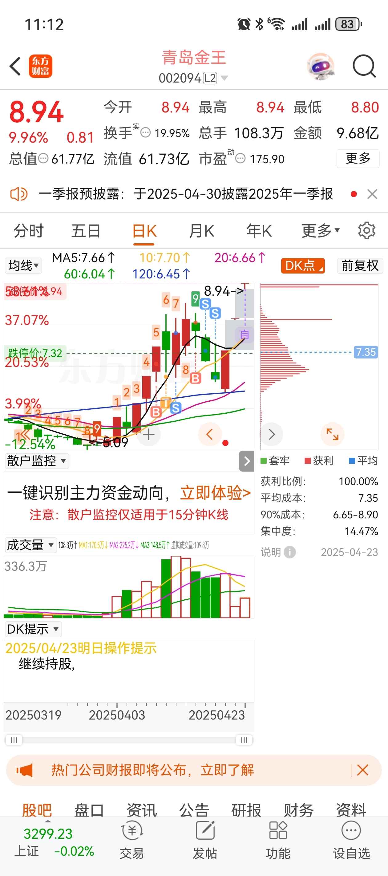 $青岛金王(SZ002094)$ 不埋怨,信命!