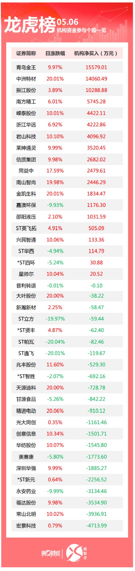 龙虎榜丨机构今日抛售这22股,买入青岛金王1.56亿元