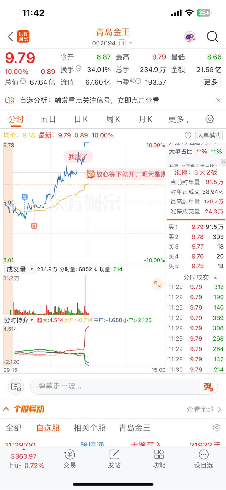 $青岛金王(SZ002094)$ 看见有拉升,又买回来了,万幸