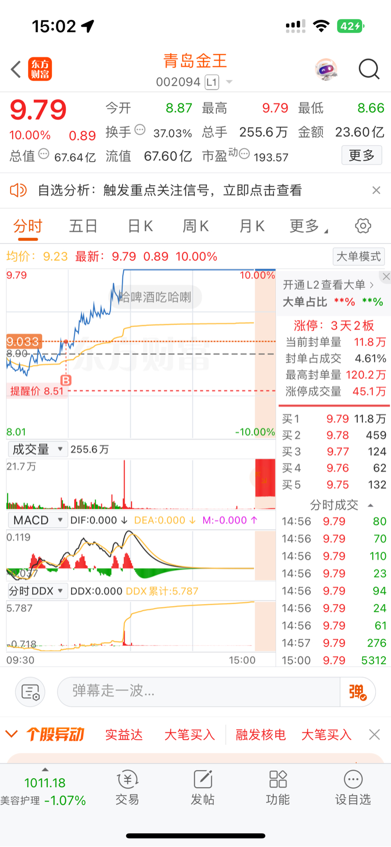 $青岛金王(SZ002094)$ 昨天出利好,早盘水下拉红,买了点,希望明天有溢价!
