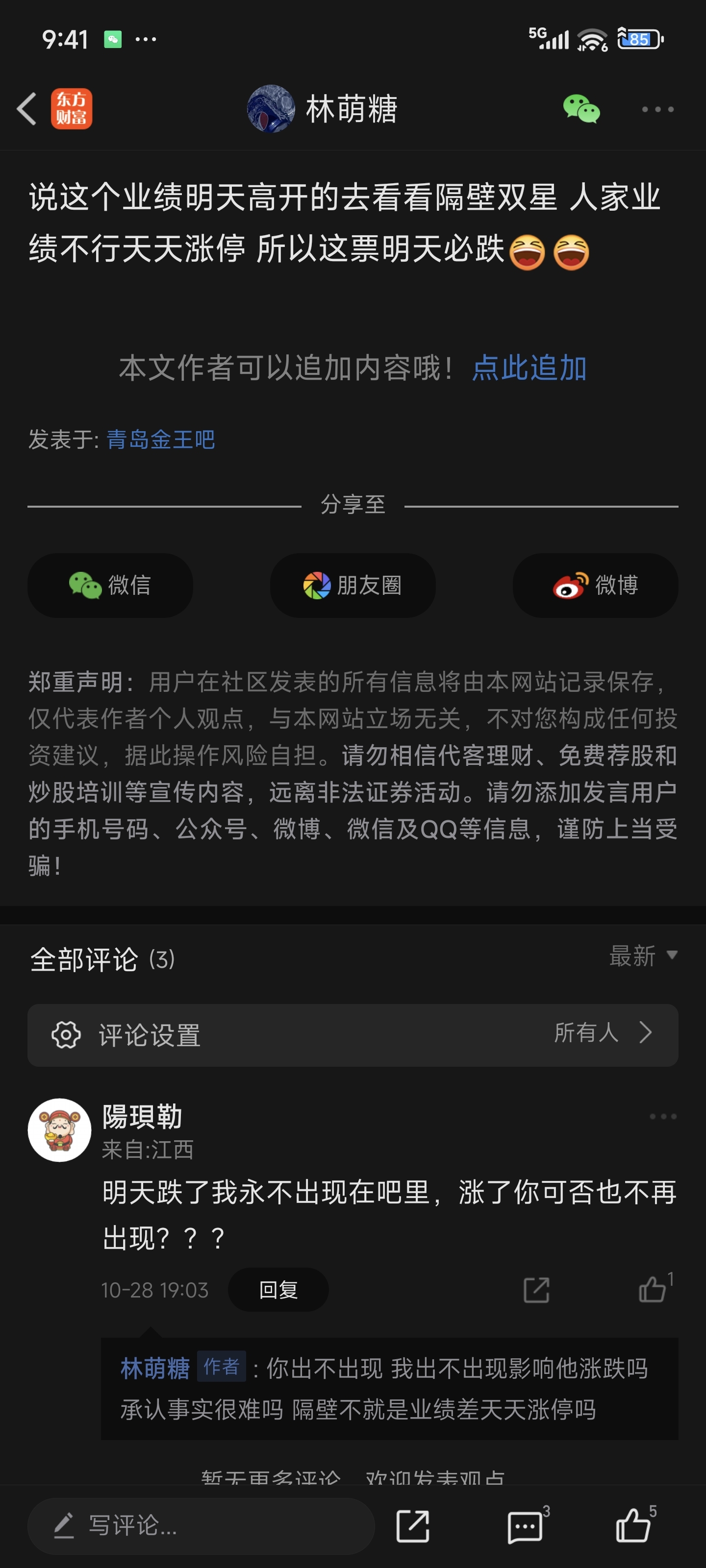 温馨提示: 1.根据《证券法》规定,禁止编造、传播虚假信息或者误导性信息,扰乱证券市场;2.用户在本社区发表的所有资料、言论等仅代表个人观点,与本网站立场无关,不对您构成任何投资建议。用户应基于自己的独立判断,自行决定证券投资并承担相应风险。《东方财富社区管理规定》