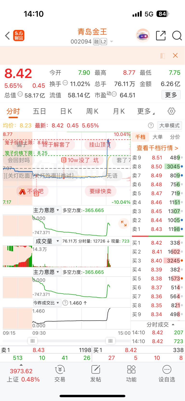 $青岛金王(SZ002094)$ 最低7.76加仓了,主力你随意砸吧