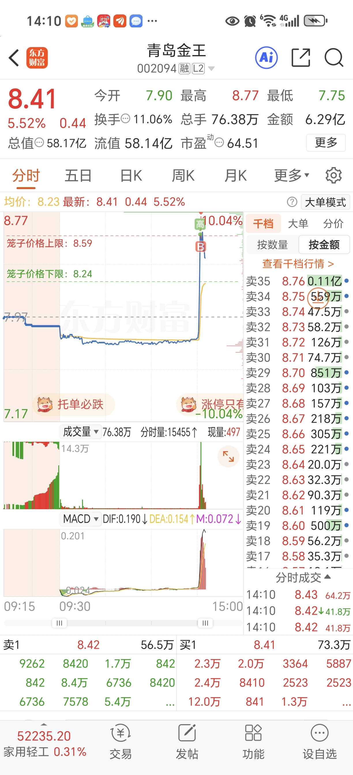 $青岛金王(SZ002094)$ 你们是不是都表演完了?看我的吧