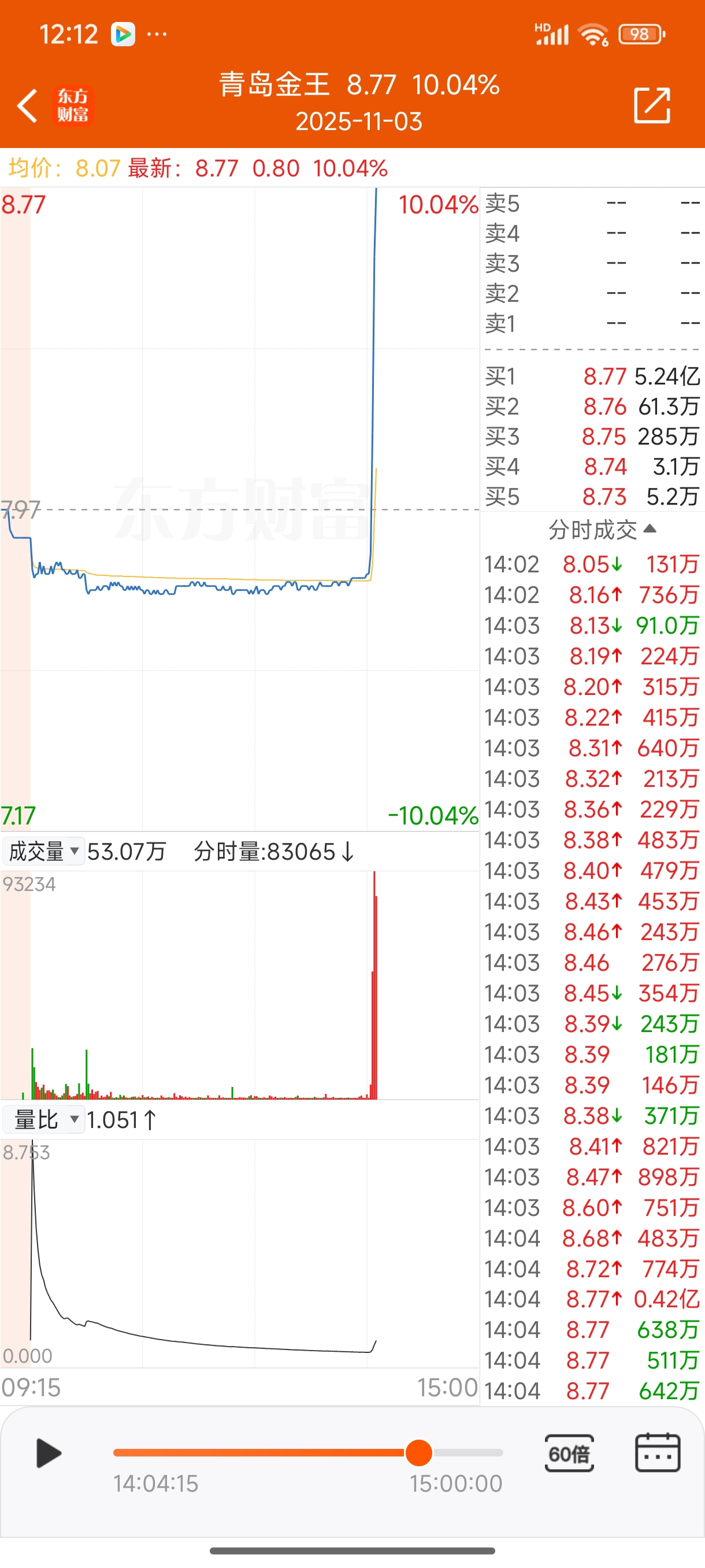 $青岛金王(SZ002094)$ 一根大阳线,千军万马来相见!主力5万手封单不赚钱,怎么可能走,拉伸洗盘一两天,洗盘结束立马拉飞,潜伏进来,感觉就在这两天!