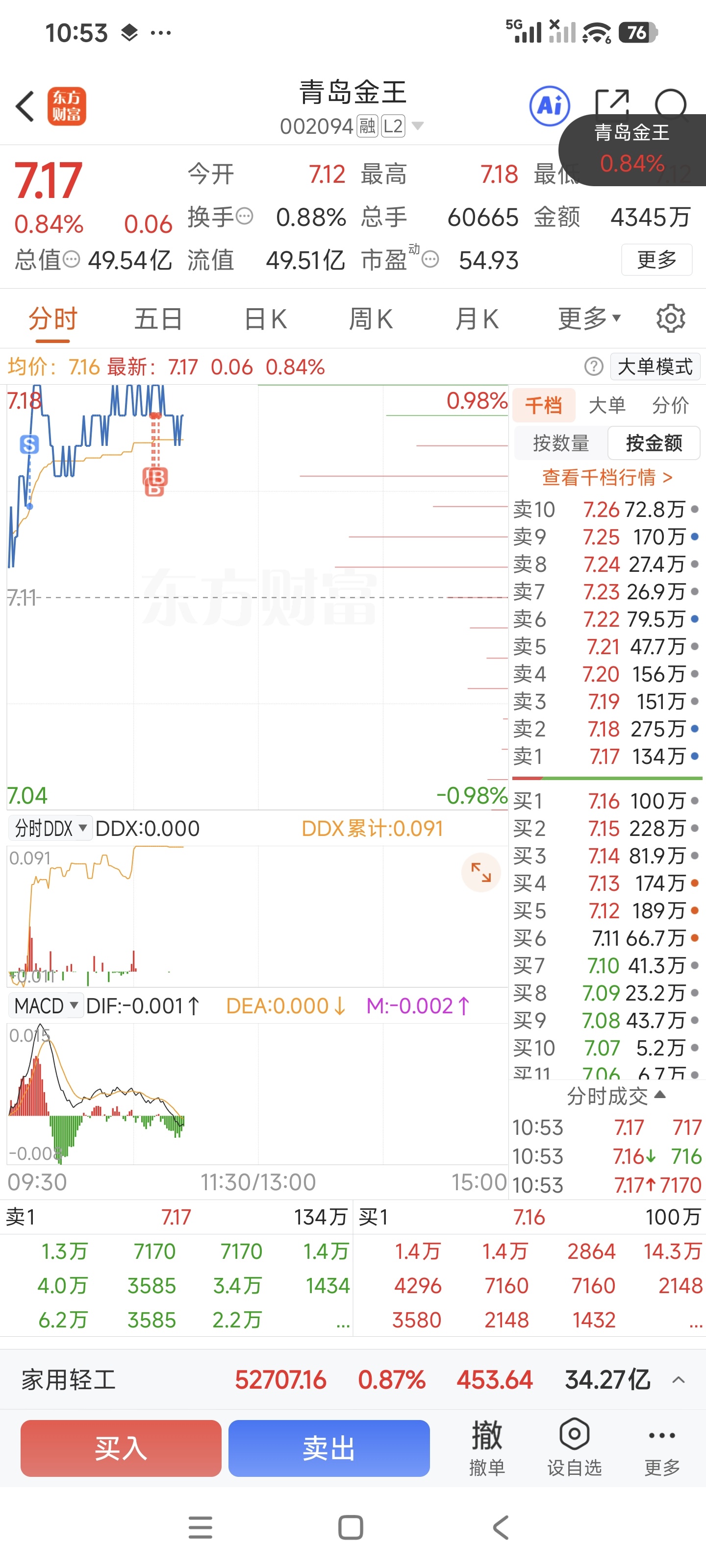 $青岛金王(SZ002094)$ 早上加仓买入搞成卖出 又买进来 亏了好几分
