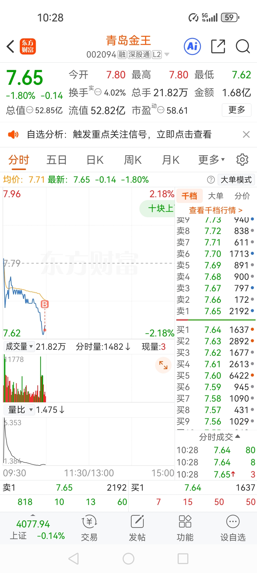 $青岛金王(SZ002094)$ 光说不练假把式,直接加仓