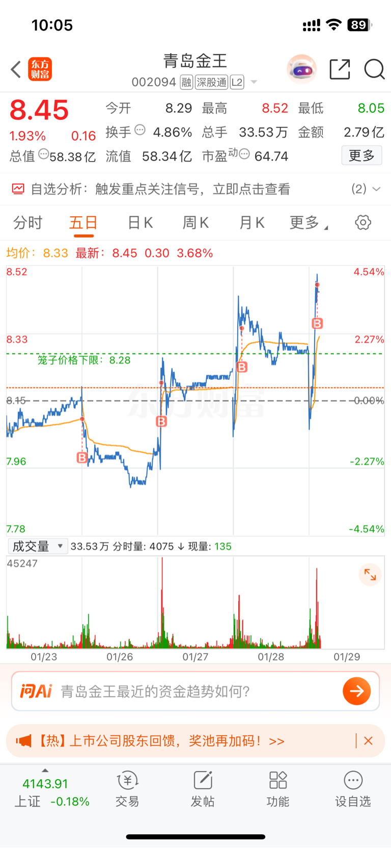$青岛金王(SZ002094)$ 这怎么弄啊。冲高买一点,冲高买一点