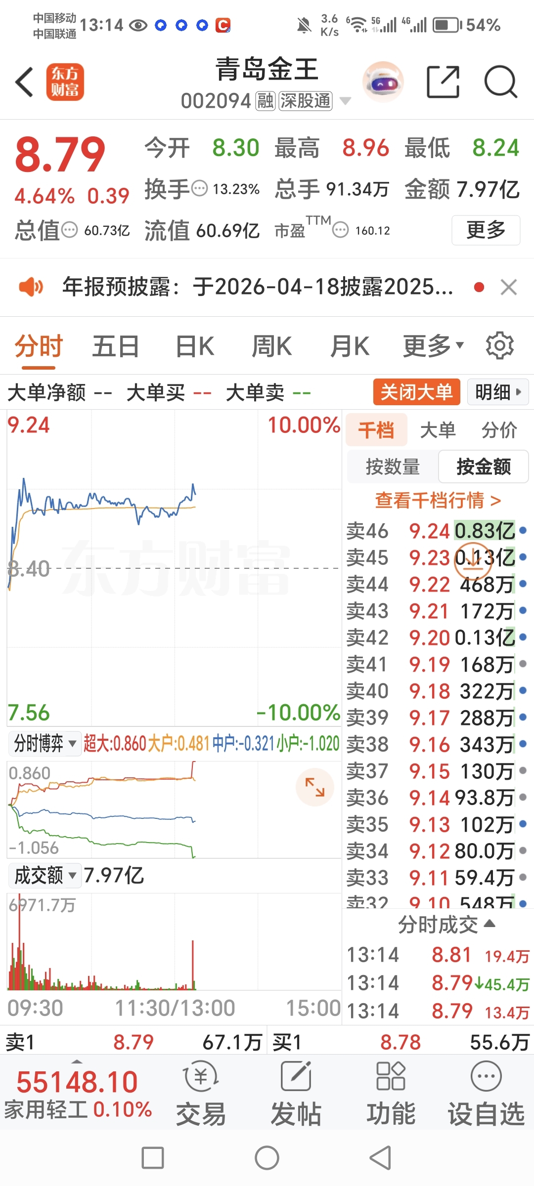 $青岛金王(SZ002094)$ 主力是会控盘的