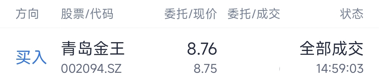 $青岛金王(SZ002094)$ 刷到就是缘分,尾盘集合竞价进来了,看二月份能不能翻倍,反正哪里都是亏,相信下玄学
