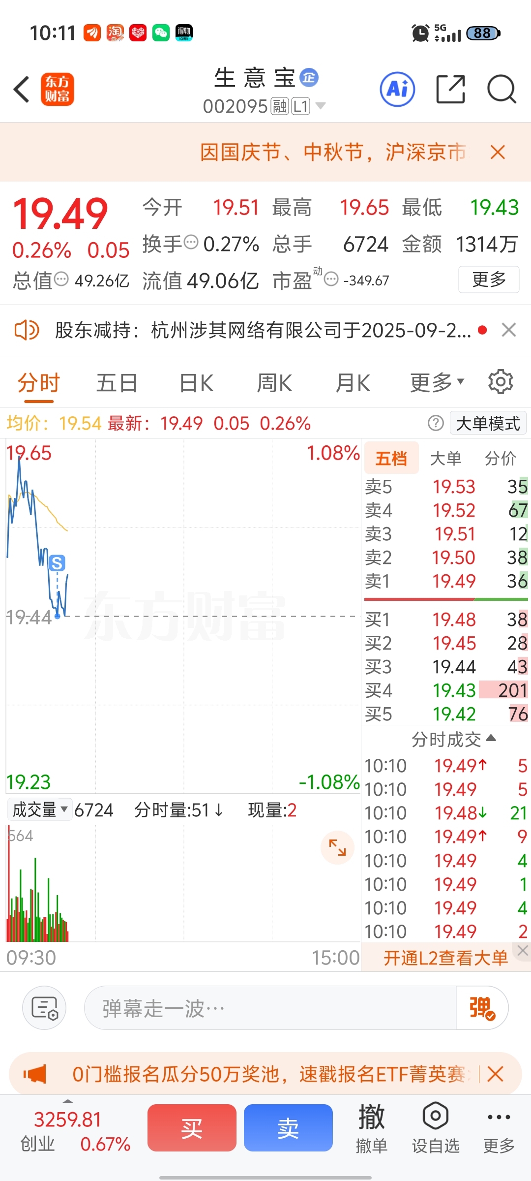 $生 意 宝(SZ002095)$ 就等着我割肉呢