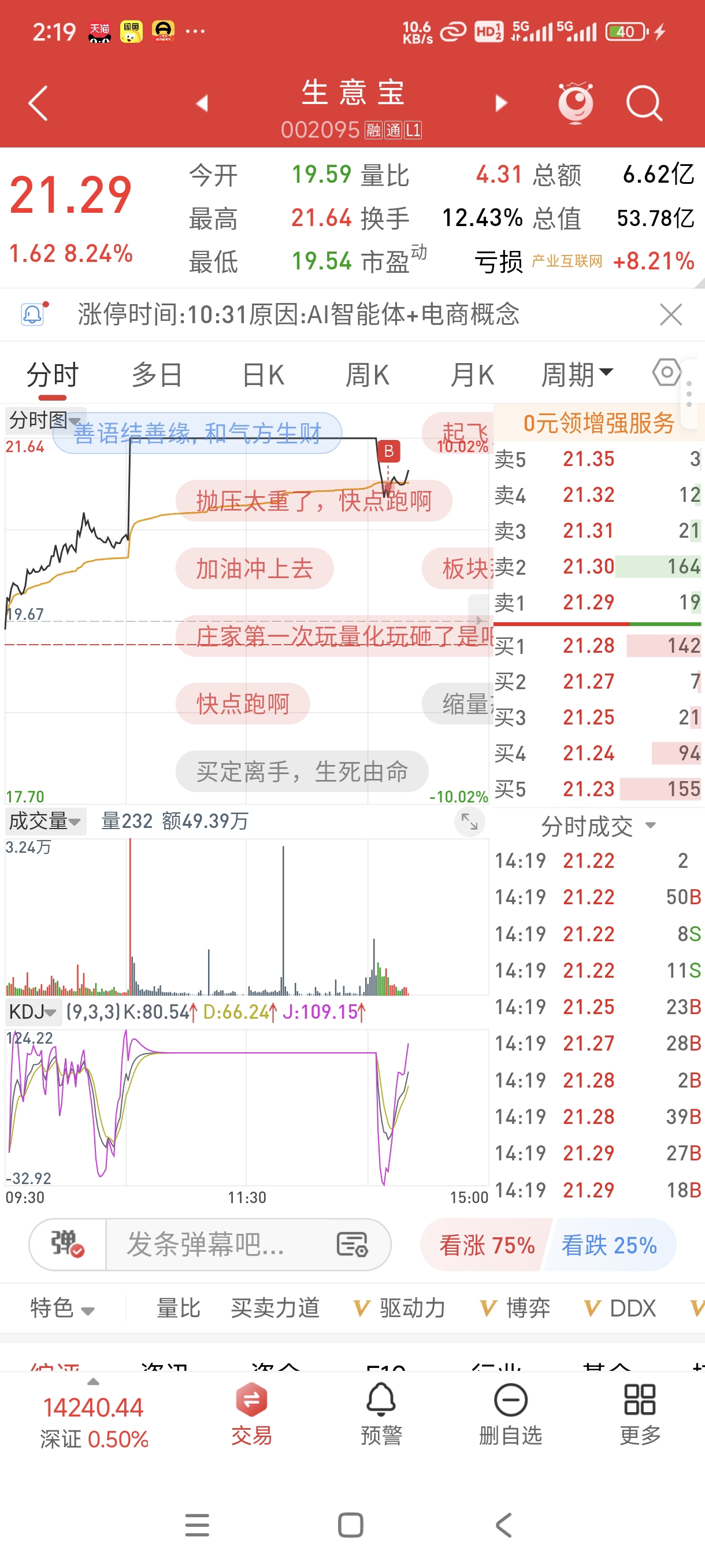$生 意 宝(SZ002095)$ 怕啥,炸板我还补仓了,庄家花这么多封板,还能低开多少