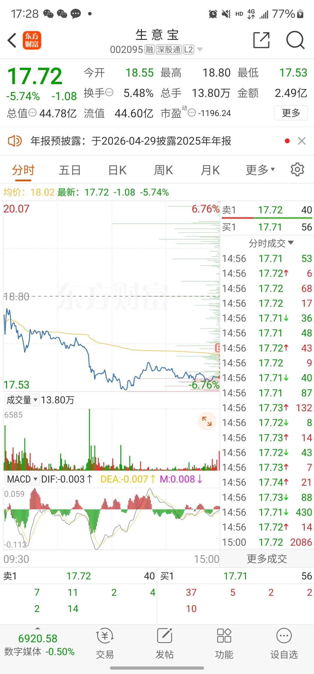 $生 意 宝(SZ002095)$ 明天能有一个点的利润吗