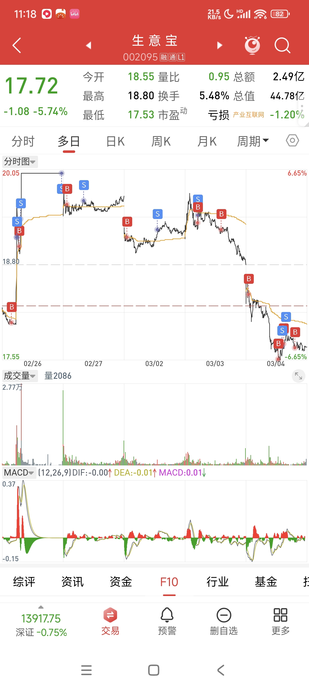 $生 意 宝(SZ002095)$ 我服了,每次高位加仓,在这个股票搞3次了,每次赚搞成大亏,这回回本永远不玩你这个杂毛了