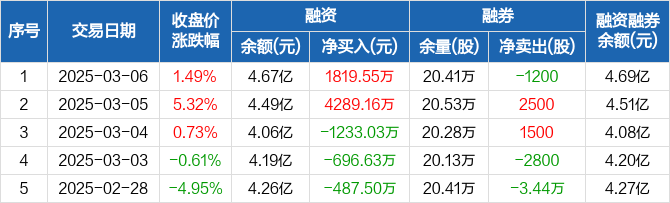山河智能:融资余额4.67亿元,创历史新高(03-06)