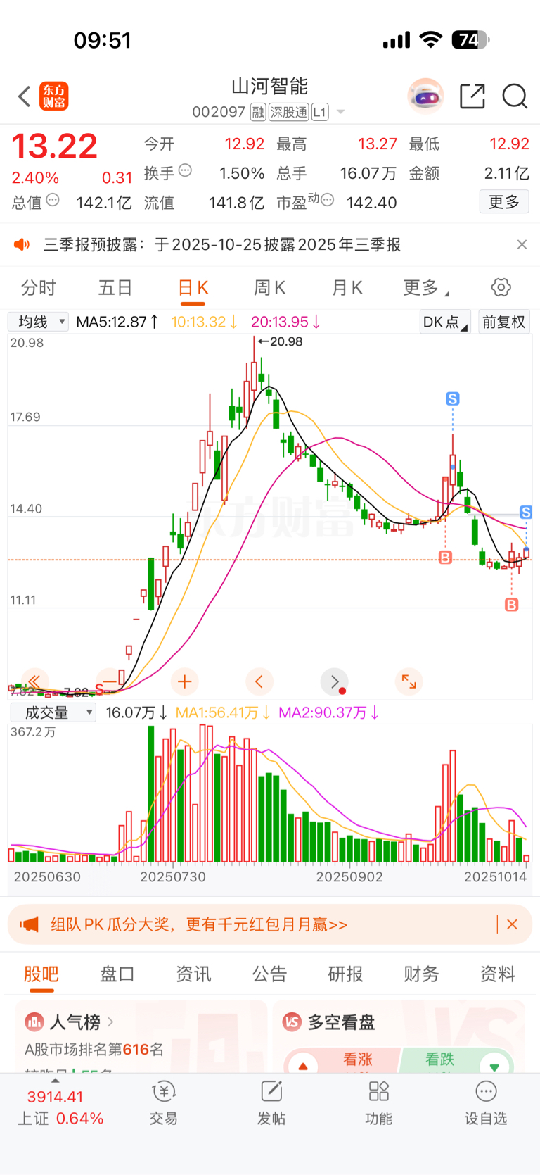 $山河智能(SZ002097)$ 我进去了,我又出来了,诶