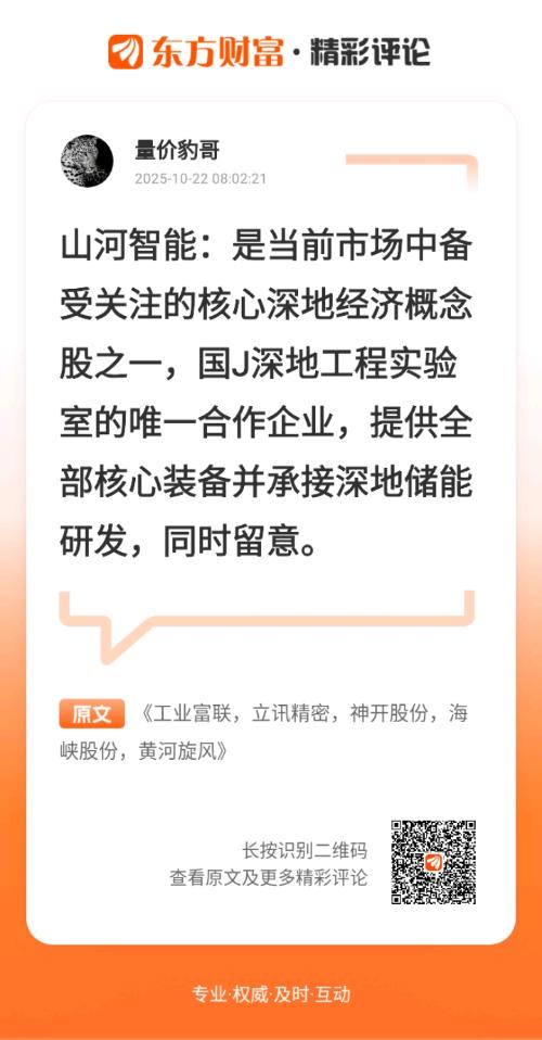 //@量价豹哥 :山河智能:是当前市场中备受关注的核心深地经济概念股之一,国J深地工程实验室的唯一合作企业,提供全部核心装备并承接深地储能研发,同时留意。 $山河智能(SZ002097)$$闻泰科技(SH600745)$$黄河旋风(SH600172)$