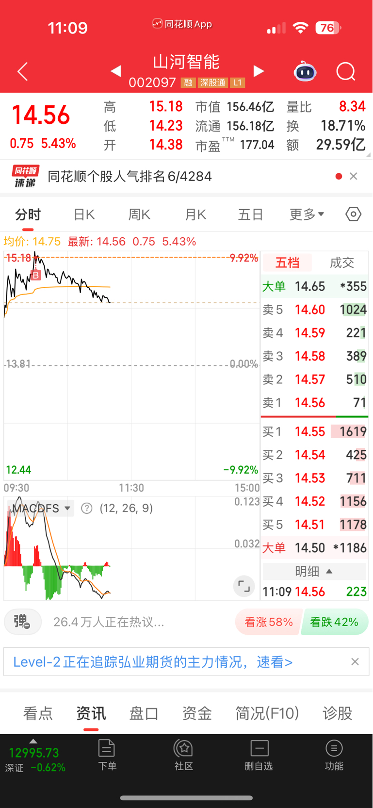 $山河智能(SZ002097)$ 天踏了 买了一瓶白酒 等一下喝完
