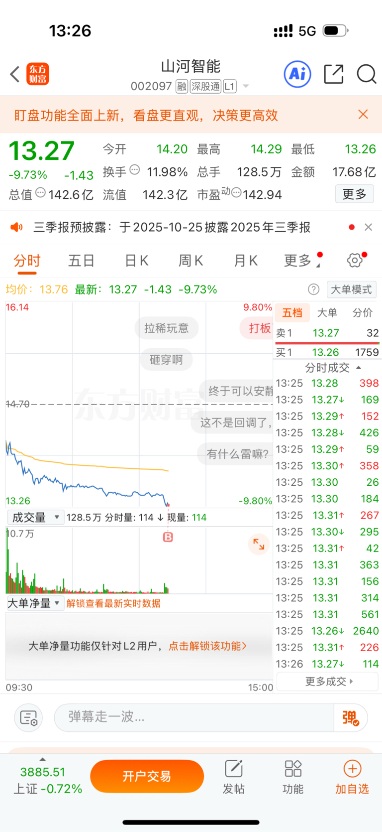 13.27选择抄底$山河智能(SZ002097)$ #强势机会# #实盘记录# #投资干货# #投资随笔#