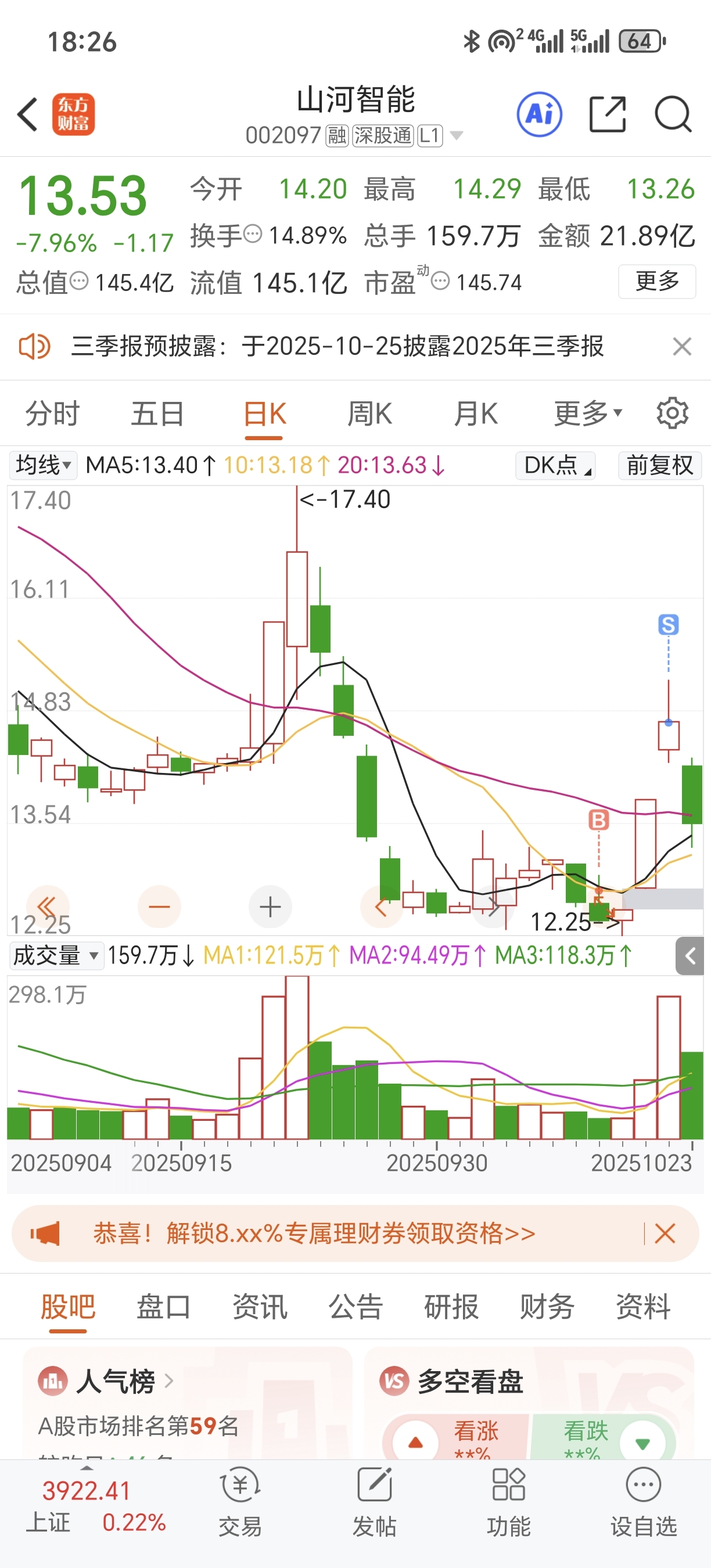 $山河智能(SZ002097)$ 还好昨天走了,看明天什么走势要不要在接回来。