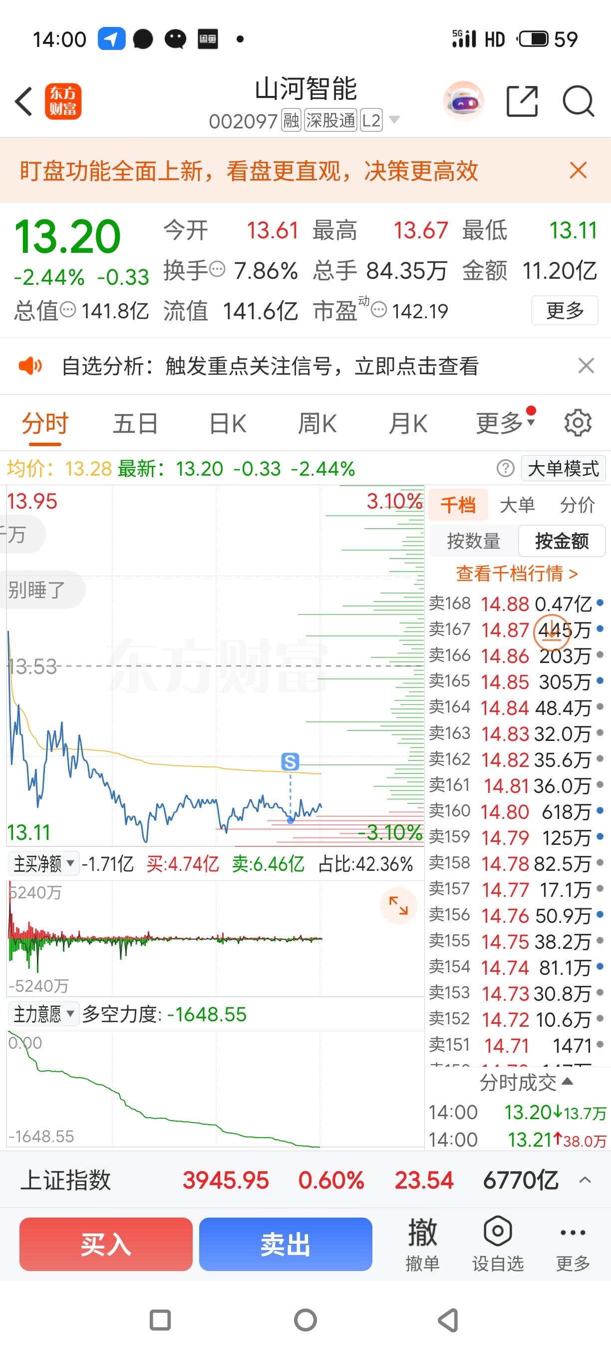 $山河智能(SZ002097)$ 好大的卖单。