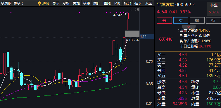 $平潭发展(SZ000592)$:公司是以"林板一体化"为核心,同时拓展菌草技术应用,独特的地理位置与政策优势频受大主力的青睐,技术形态近期更是突破了2018年3月份以来形成的大箱体上沿,筹码也是高度集中,短线有二进三的预期,开盘需要高开高走快速封板,大概率会小仓位跟一笔,若是直接高开低走放弃操作。